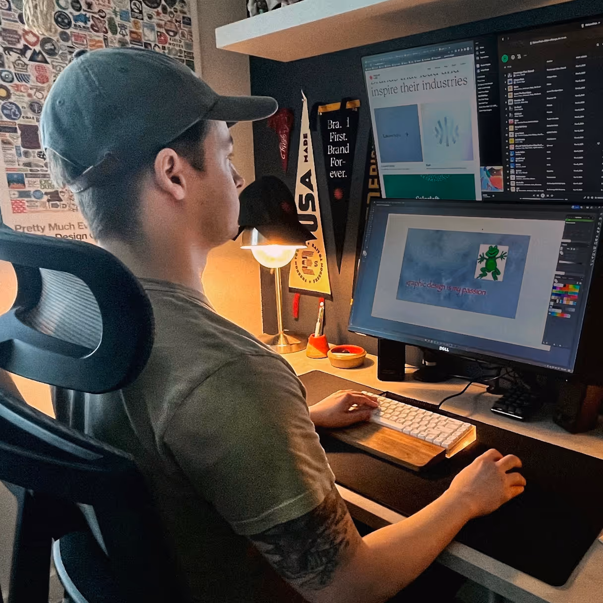 After high school, Stetson landed a job at an architecture firm where he learned to create mockups for buildings he was working on. That’s when he learned Photoshop, and the rest is history. His world became consumed by all things graphic design and branding, watching countless tutorials and reading endless articles to learn as much as he could about design theory, trends, typography, graphic production, software, and anything else he could get his hands on.