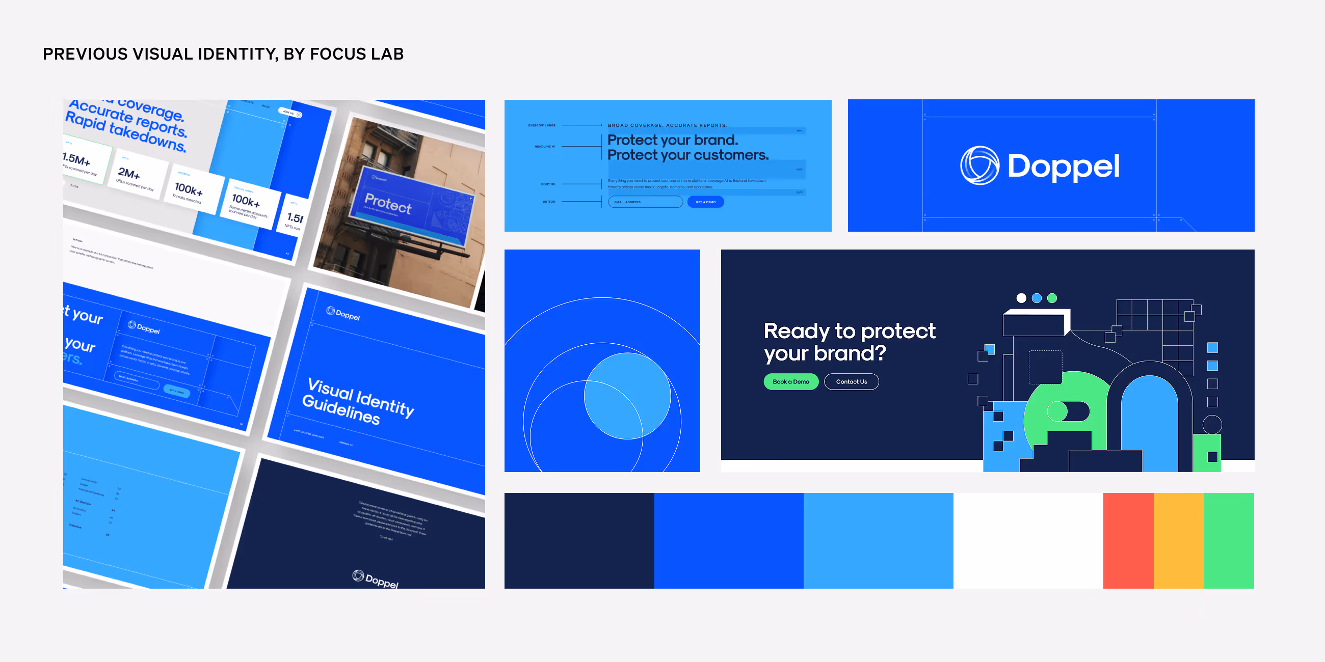 Illustration became another lever for elevating the system. We introduced more dimensional, story-driven scenes that reinforce Doppel’s role as an innovative force in cybersecurity. These illustrations create interest through gradients and textures while remaining simple enough to be reproduced by different designers. The result is a style that’s accessible, scalable, and disruptive in all the right ways.